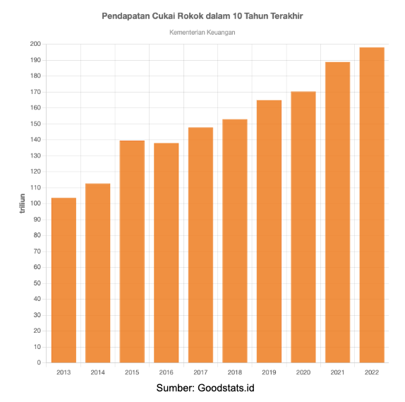Pendapatan cukai rokok 10 tahun terakhir